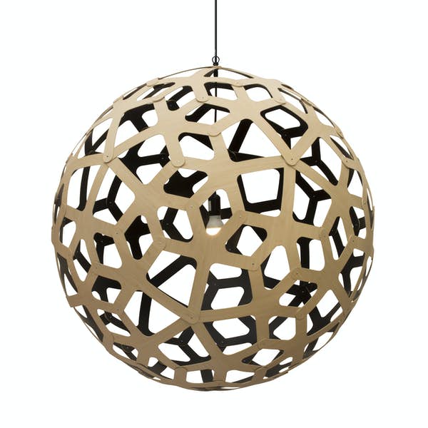 The David Trubridge Coral Pendant Light is available in Bamboo, black or a range of colours. Colours available include lime, Orange, Blue, Pink, Aqua, Red, White, Black Inside, Black Outside, White Two sided, Black Two sided.