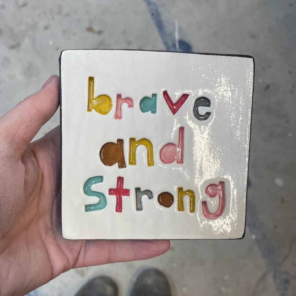 Brave and Strong Square Ceramic Tile Wall Art M Ceramics