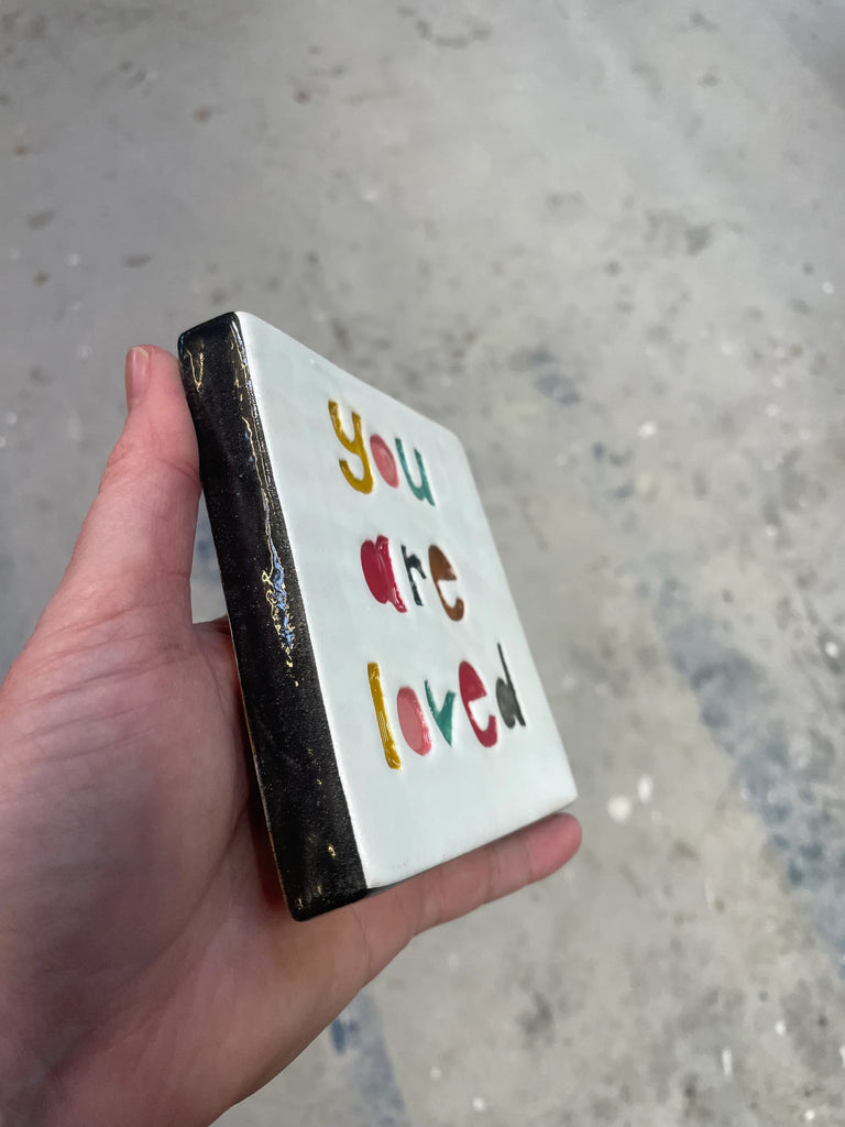 Ceramic 'you are loved' Tile. A little piece of ceramicy goodness - beautiful handmade square tile, crafted from NZ clay.